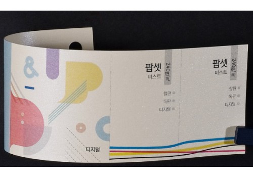 금속펄이 잔잔하게 처리된 새롭고 현대적인 용지로서 보이는 각도에 따라 색상이 다르게 보이는 장점이 있기 때문에 개성있고 사이버틱한 인쇄물을 원하는 고객들이 선호합니다